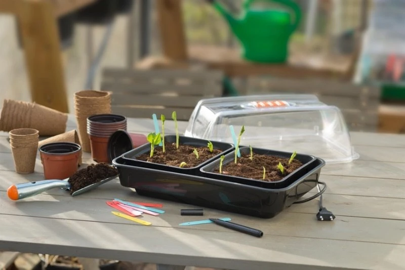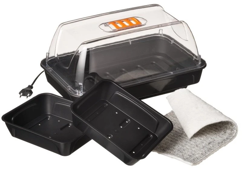 Deze luxe, verwarmde kweekkas van Nature is uitgerust met een verwarmingselement voor een stabiele temperatuur. De kweekkas is gemaakt van duurzame, harde kunststof (spuitgiet) en heeft twee aparte kweekbakjes. Dankzij de capillaire (vochtvasthoudende) mat wordt het water goed verdeeld in de kweekbak. De transparante deksel heeft ventilatieopeningen zodat de vochtigheidsgraad optimaal blijft. De verwarmde kweekkas heeft een afmeting van H 19 x 38 x 24 cm.